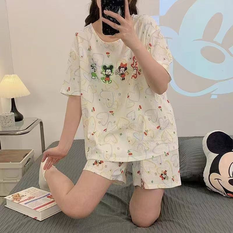ست تی شرت شلوارک نخ موسلین کیفیت عالی مناسب سایز 38 تا 44